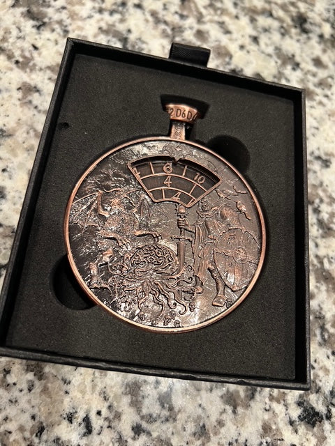 Our metal stopwatch spinners have 3 dials on either side to match the 7 standard D&D dice, with classic D&D monsters on both sides