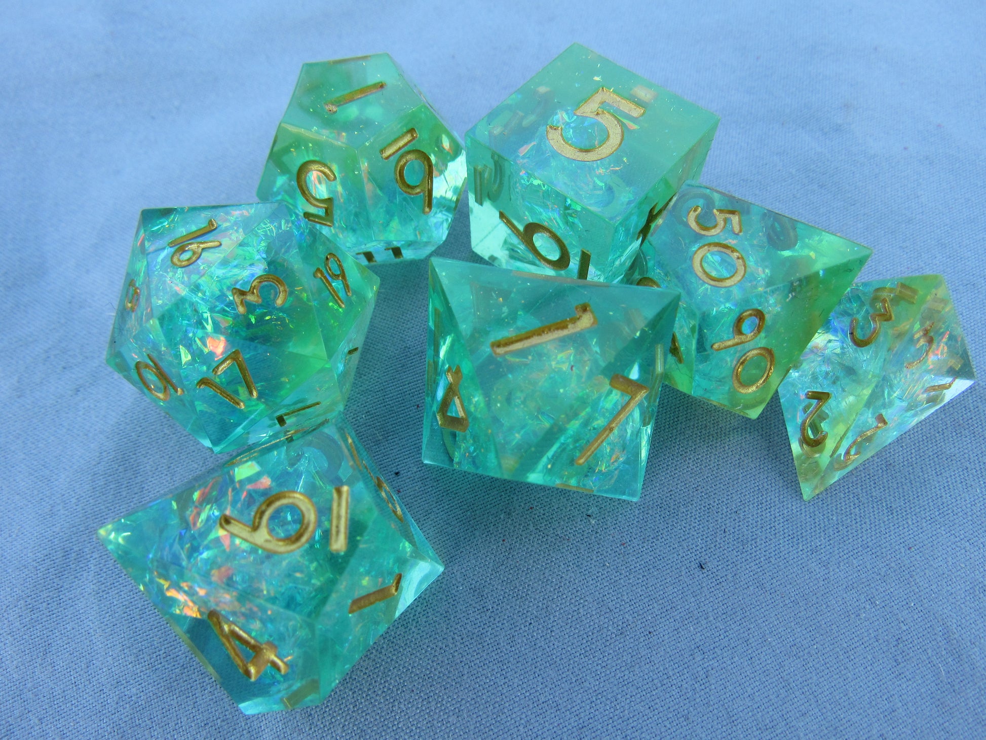 Our sharp edged resin dice are super light with sharp, crisp edges. The numbers are rounded and bold for easy reading. Calibrated and spin tested for precision and accuracy