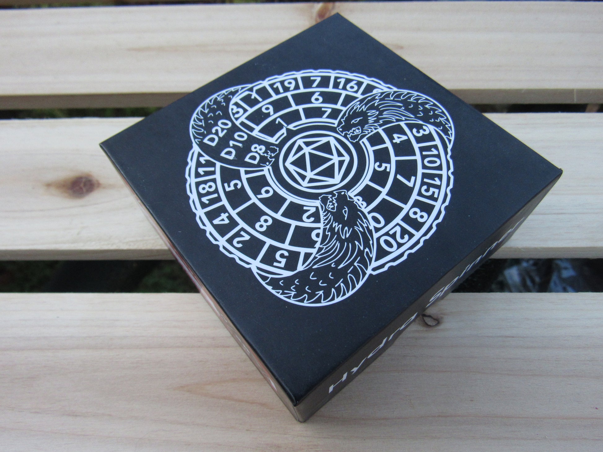 3 dials on either side have the standard D&D dice. Fits nicely in your hand just like a fidget spinner