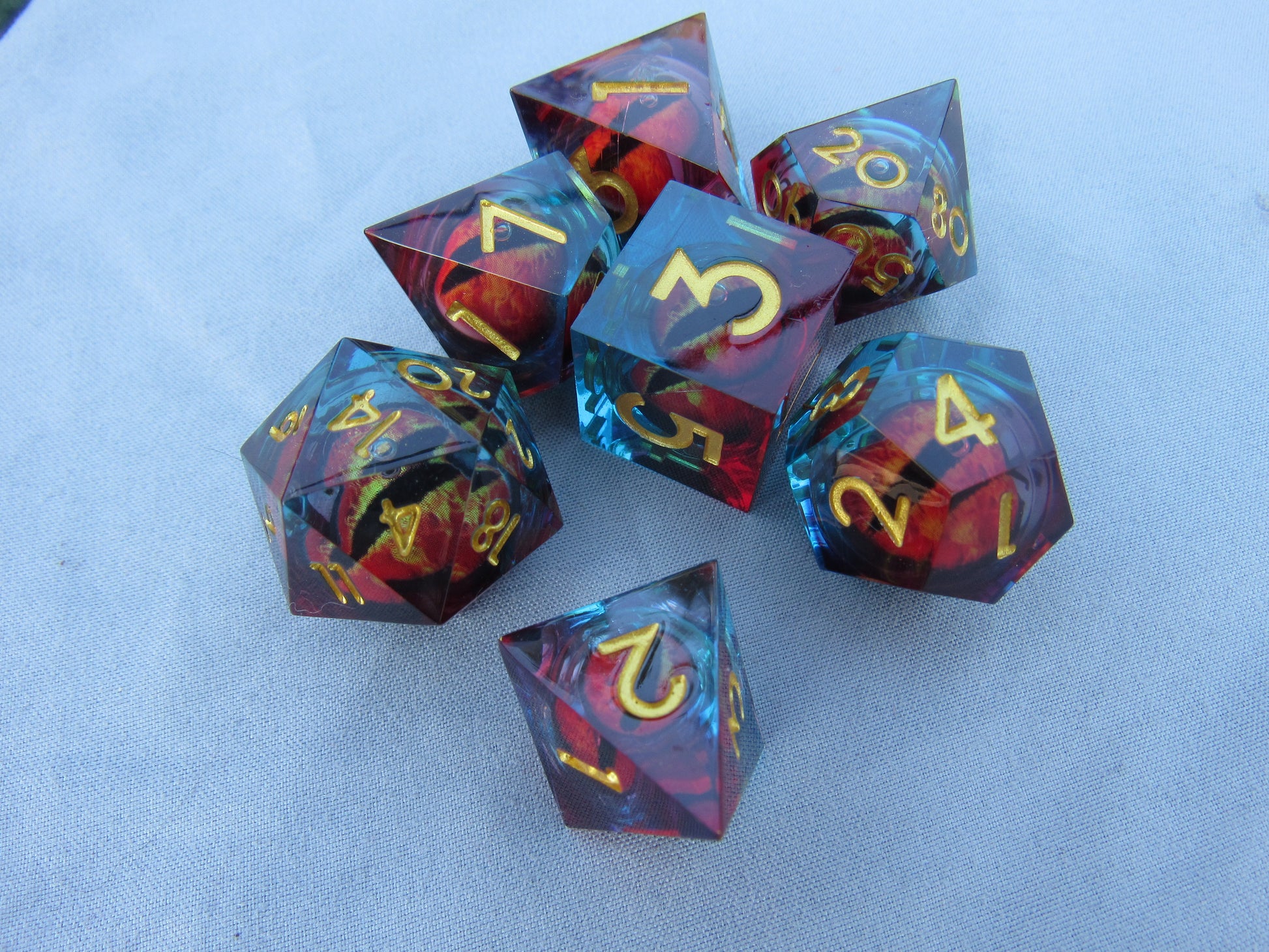 Red and Blue Eyeball Liquid Core Sharp Resin Dice