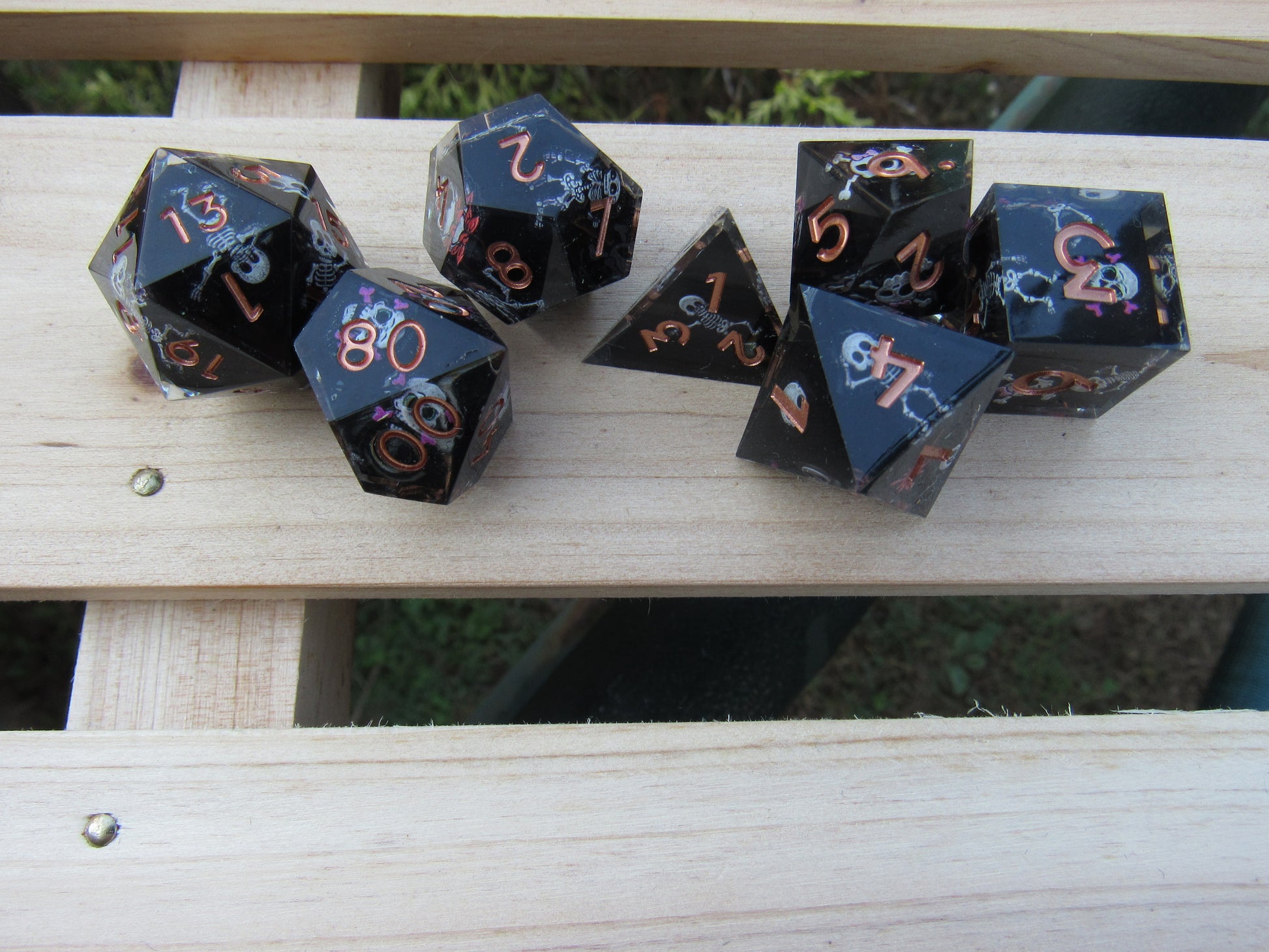 Our sharp edged resin dice are super light with sharp, crisp edges. The numbers are rounded and bold for easy reading. Calibrated and spin tested for precision and accuracy